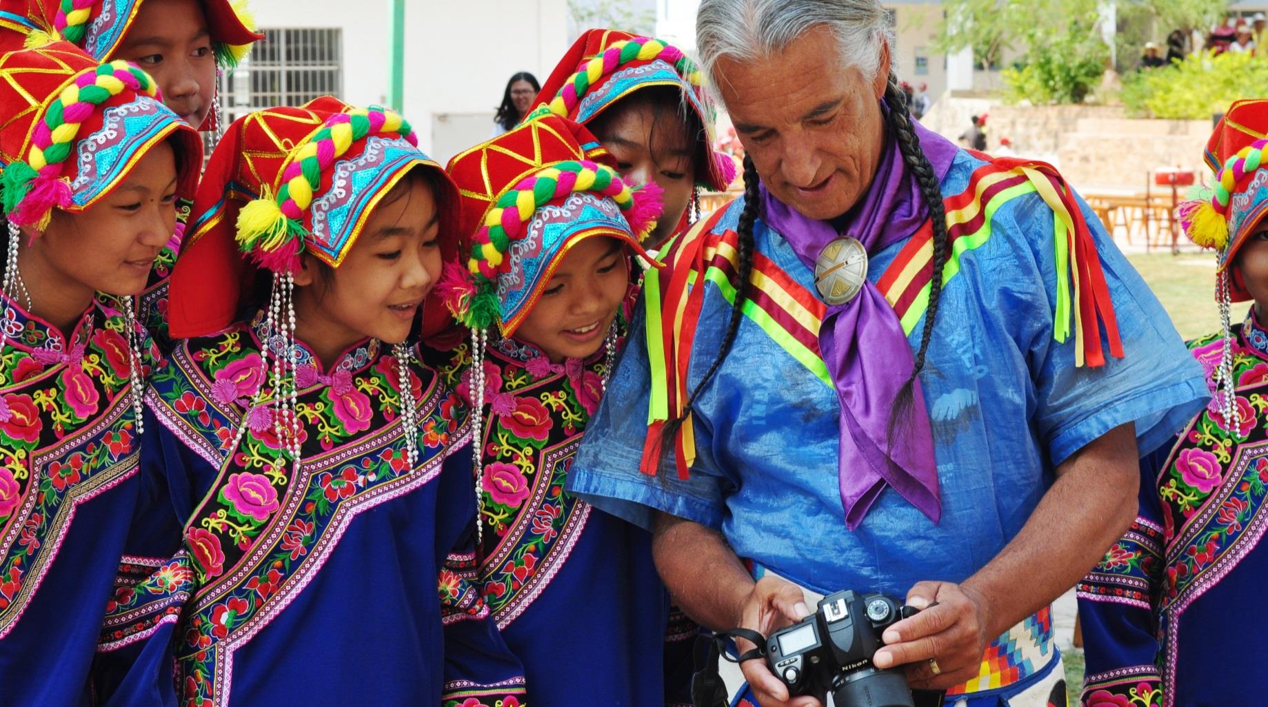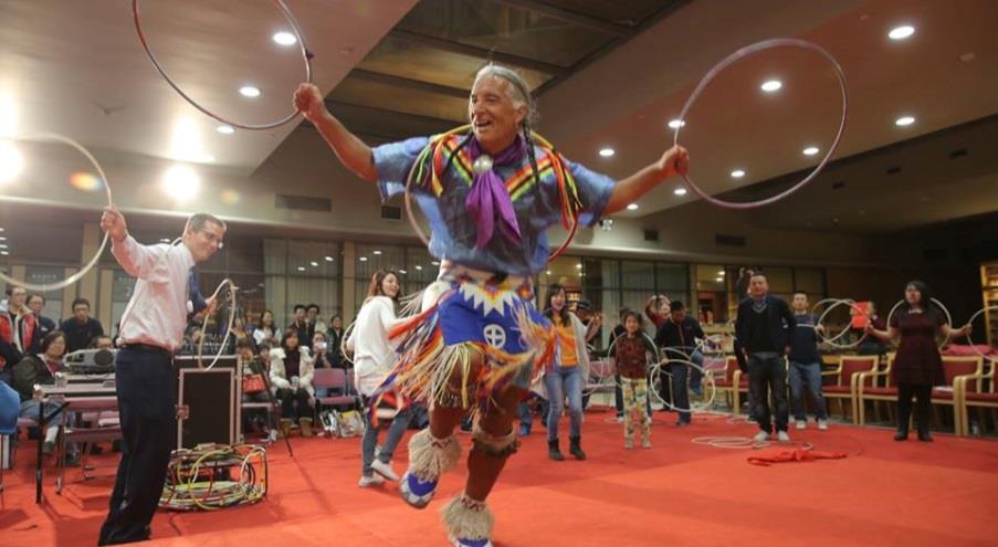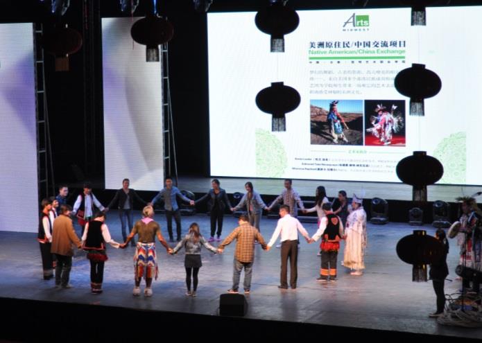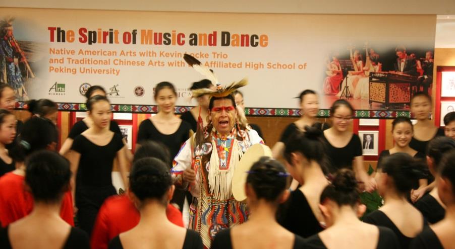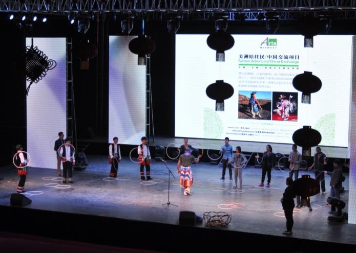 From 2012-2016, Barbash Arts Consulting toured traditional performing artists from the Navajo, Lakota, Comanche and Anishinaabe Nations throughout various territories in the People’s Republic of China. These artists have performed for and interacted with Chinese citizens from all socio-economic classes, and in locations ranging from a remote rural villages in Yunnan, the mines and grasslands of Inner Mongolia and (Harbin region) (where they were the first foreigners ever to visit the village) to China’s premiere performing arts venue in Beijing. These programs have also reached a wide variety of schools, from those serving the children of migrant workers to those of China’s Air Force officers, from Han students to Yi, Wa and other ethnic minorities in Yunnan, Inner Mongolia and (Harbin area). Programs included song, dance, storytelling, flute playing, audience instruction/participation, including dance and question/answer periods, as well as demonstration of traditional crafts. Presentations included discussion of the challenges of keeping traditions alive in a contemporary society, the artists’ efforts through classroom teaching and participation in traditional ceremonies in their communities and elsewhere, and recording CDs, to revive their languages (Lakota, Comanche and Anishinaabe), music, crafts and customs. Further, Kevin Locke’s hoop dance included also a narrative explaining the meaning of the dance that incorporated universal life lessons.
