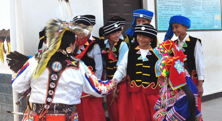Throughout the exchanges, it was clear that the Native American performers learned about Han and ethnic minority cultures as well. Students performed for them, and questions and answers were exchanged not only during formal sessions but also during day-to- day activities. They very quickly recognized the kinship of the Native American and Chinese cultures, and took endless delight in recognizing both the physical and material cultural similarities of their peoples.