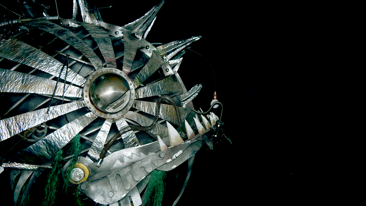“Papa’s Time Machine” uses life size puppets with a steam punk aesthetic to tell a compelling story of family devotion, love and loss.